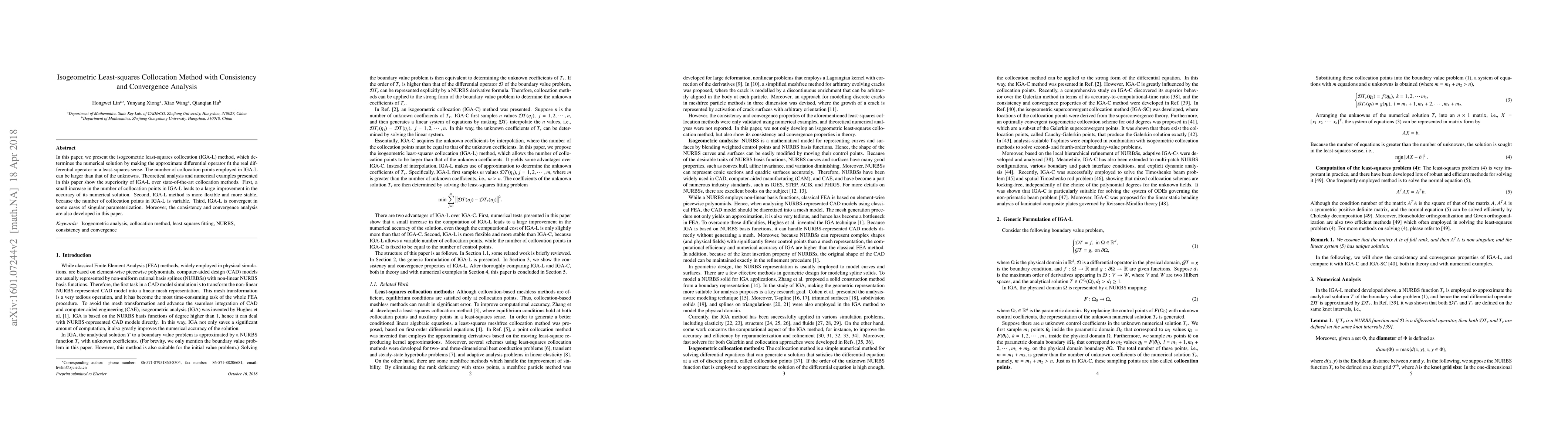 This paper introduces the isogeometric least-squares collocation (IGA-L) method, which enhances numerical solutions by fitting the approximate differential operator to the real one in a least-squares sense. The method demonstrates superior accuracy, flexibility, and stability due to its variable number of collocation points and is shown to be convergent in certain singular parameterization cases.