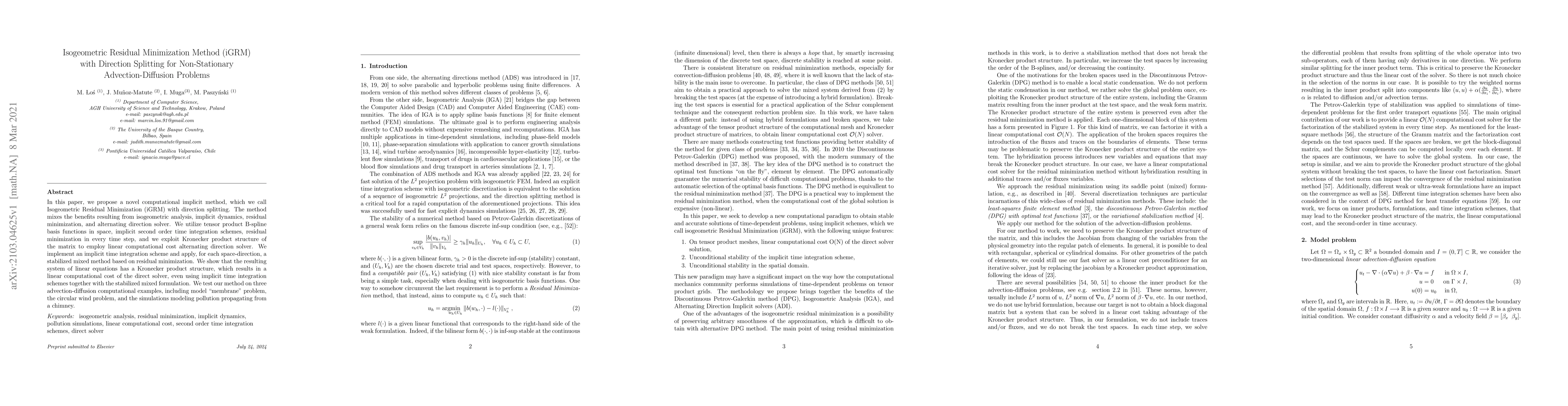 This paper proposes an Isogeometric Residual Minimization (iGRM) method with direction splitting for non-stationary advection-diffusion problems, combining implicit dynamics, residual minimization, and an efficient alternating direction solver. The method achieves linear computational cost through the Kronecker product structure of the matrix.