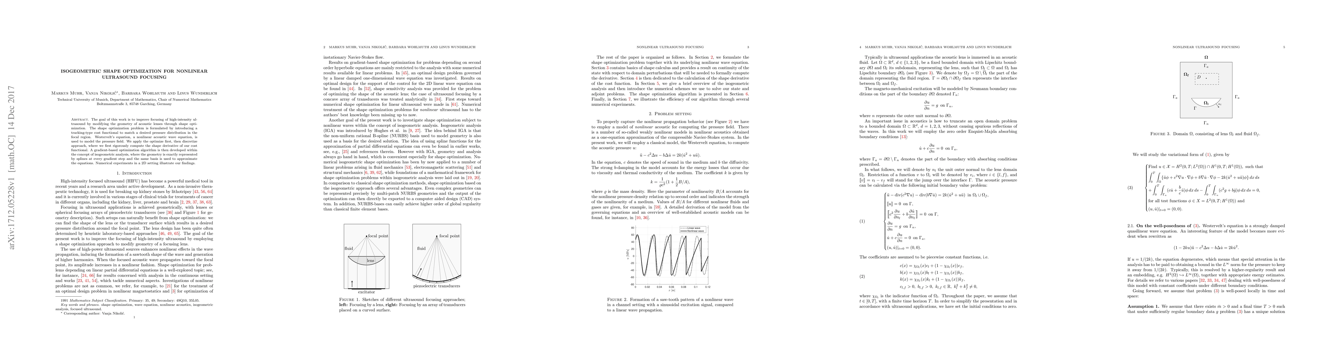 This paper presents an isogeometric shape optimization method to enhance the focusing of high-intensity ultrasound by adjusting the geometry of acoustic lenses. It employs Westervelt's equation to model the nonlinear pressure field and uses gradient-based optimization within isogeometric analysis to rigorously compute shape derivatives and achieve precise geometry representation.