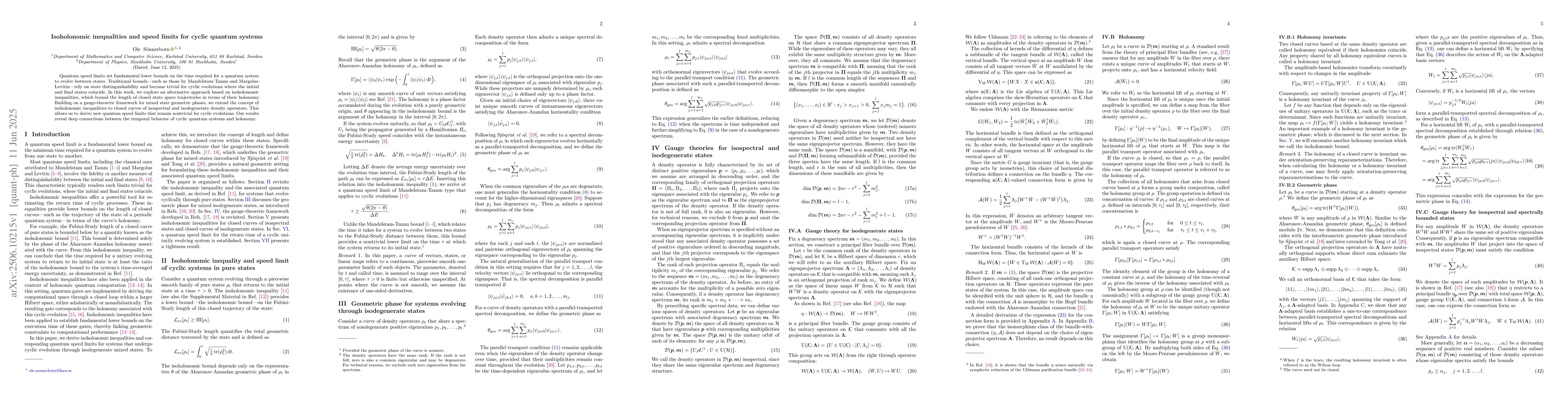 Quantum speed limits set fundamental lower bounds on the time required for a quantum system to evolve between states. Traditional bounds -- such as those by Mandelstam-Tamm and Margolus-Levitin -- rely on state distinguishability and become trivial for cyclic evolutions where the initial and final states coincide. In this work, we explore an alternative approach based on isoholonomic inequalities, which bound the length of closed state space trajectories in terms of their holonomy. Building on a gauge-theoretic framework for mixed state geometric phases, we extend the concept of isoholonomic inequalities to closed curves of isospectral and isodegenerate density operators. This allows us to derive new quantum speed limits that remain nontrivial for cyclic evolutions. Our results reveal deep connections between the temporal behavior of cyclic quantum systems and holonomy.