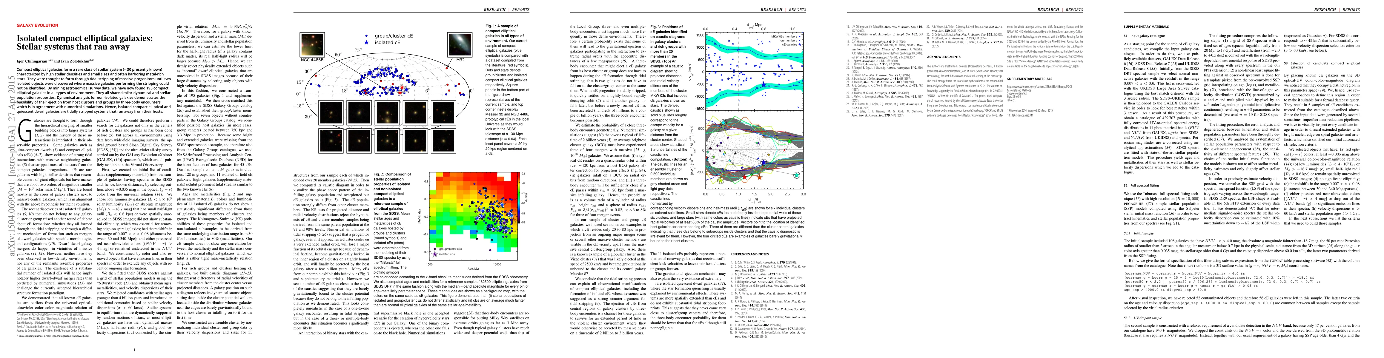 This paper identifies and analyzes 195 compact elliptical galaxies, revealing they are likely ejected from host clusters via three-body encounters, supporting the theory that these isolated systems are tidally stripped remnants that have escaped their original environments.