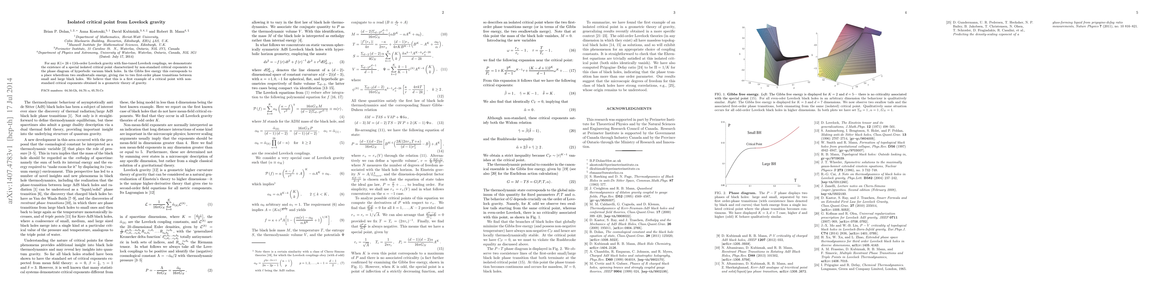 For any K(=2k+1)th-order Lovelock gravity with fine-tuned Lovelock couplings, we demonstrate the existence of a special isolated critical point characterized by non-standard critical exponents in the phase diagram of hyperbolic vacuum black holes. In the Gibbs free energy this corresponds to a place wherefrom two swallowtails emerge, giving rise to two first-order phase transitions between small and large black holes. We believe that this is a first example of a critical point with non-standard critical exponents obtained in a geometric theory of gravity.