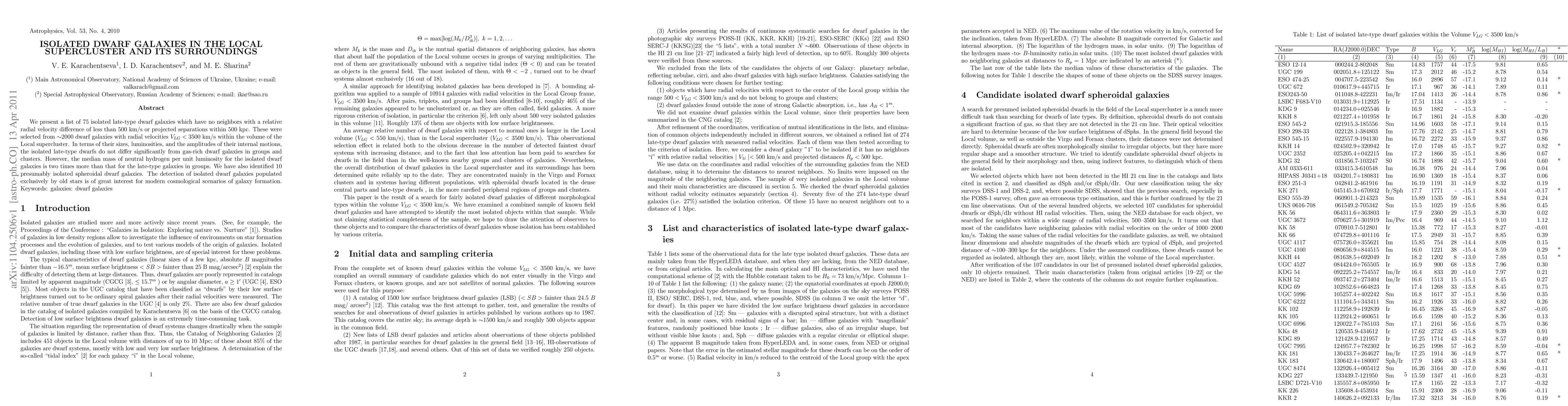 This paper identifies 75 isolated late-type dwarf galaxies within the Local supercluster, noting they lack nearby neighbors within certain velocity and spatial criteria. These isolated galaxies exhibit similar properties to gas-rich dwarf galaxies in groups but have twice the median neutral hydrogen per unit luminosity, highlighting their significance in galaxy formation models.