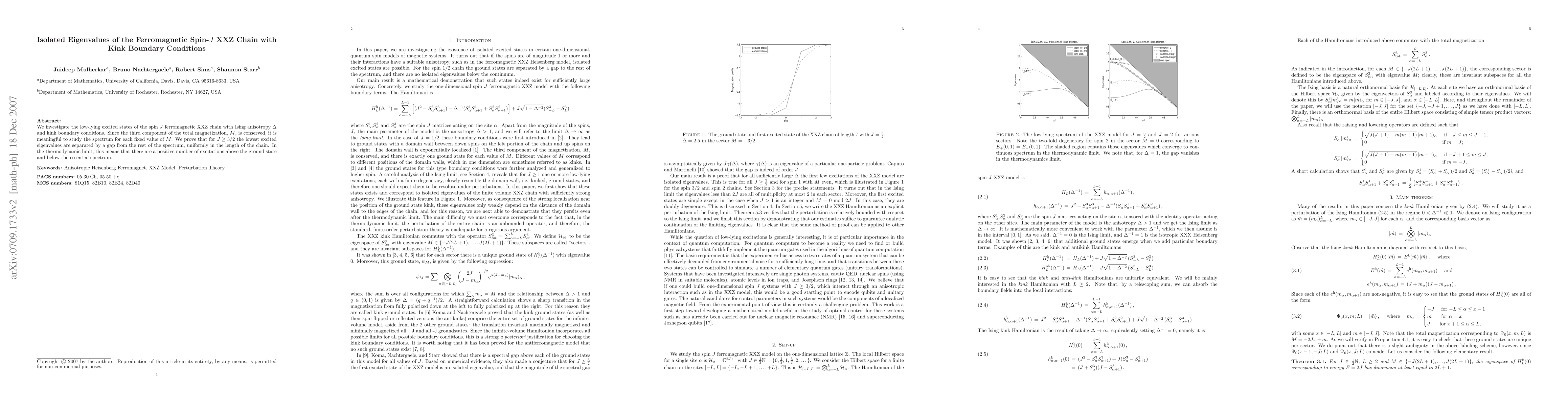 We investigate the low-lying excited states of the spin J ferromagnetic XXZ chain with Ising anisotropy Delta and kink boundary conditions. Since the third component of the total magnetization, M, is conserved, it is meaningful to study the spectrum for each fixed value of M. We prove that for J>= 3/2 the lowest excited eigenvalues are separated by a gap from the rest of the spectrum, uniformly in the length of the chain. In the thermodynamic limit, this means that there are a positive number of excitations above the ground state and below the essential spectrum.