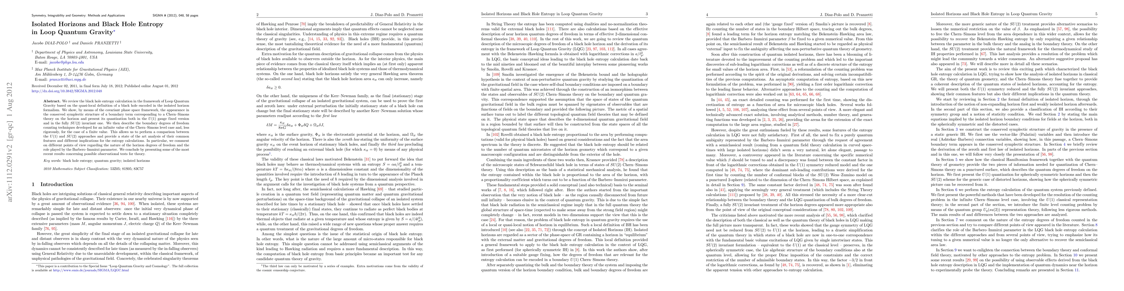 We review the black hole entropy calculation in the framework of Loop Quantum Gravity based on the quasi-local definition of a black hole encoded in the isolated horizon formalism. We show, by means of the covariant phase space framework, the appearance in the conserved symplectic structure of a boundary term corresponding to a Chern-Simons theory on the horizon and present its quantization both in the U(1) gauge fixed version and in the fully SU(2) invariant one. We then describe the boundary degrees of freedom counting techniques developed for an infinite value of the Chern-Simons level case and, less rigorously, for the case of a finite value. This allows us to perform a comparison between the U(1) and SU(2) approaches and provide a state of the art analysis of their common features and different implications for the entropy calculations. In particular, we comment on different points of view regarding the nature of the horizon degrees of freedom and the role played by the Barbero-Immirzi parameter. We conclude by presenting some of the most recent results concerning possible observational tests for theory.