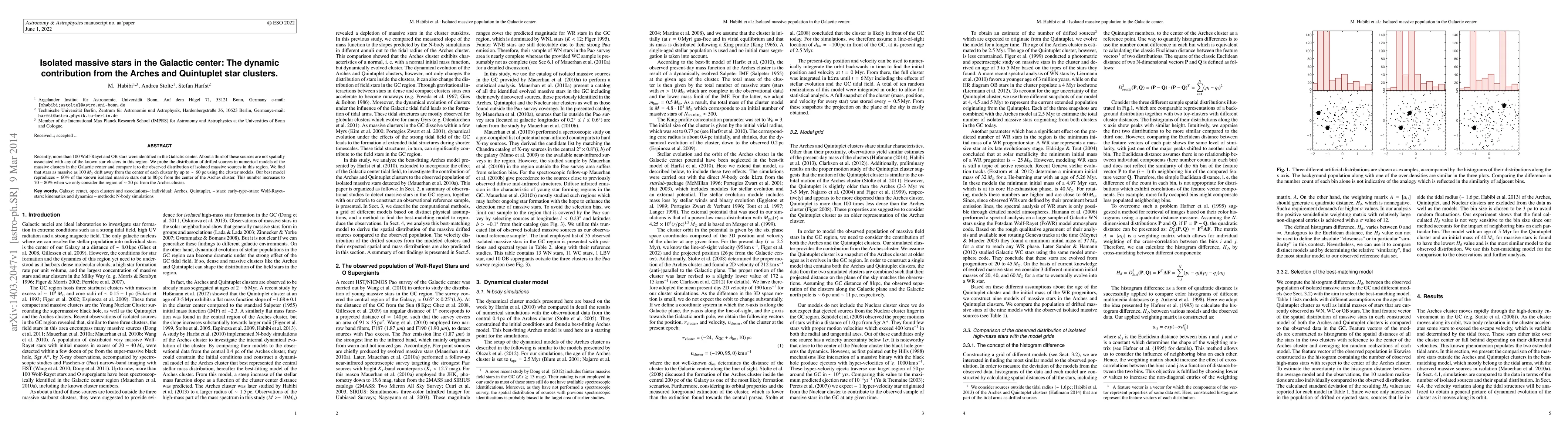 This paper investigates the origin of isolated massive stars in the Galactic center, finding that about a third of these stars drift from the Arches and Quintuplet clusters, with the best model explaining 60%-80% of the isolated stars within 80 pc and 20 pc from the Arches cluster, respectively.