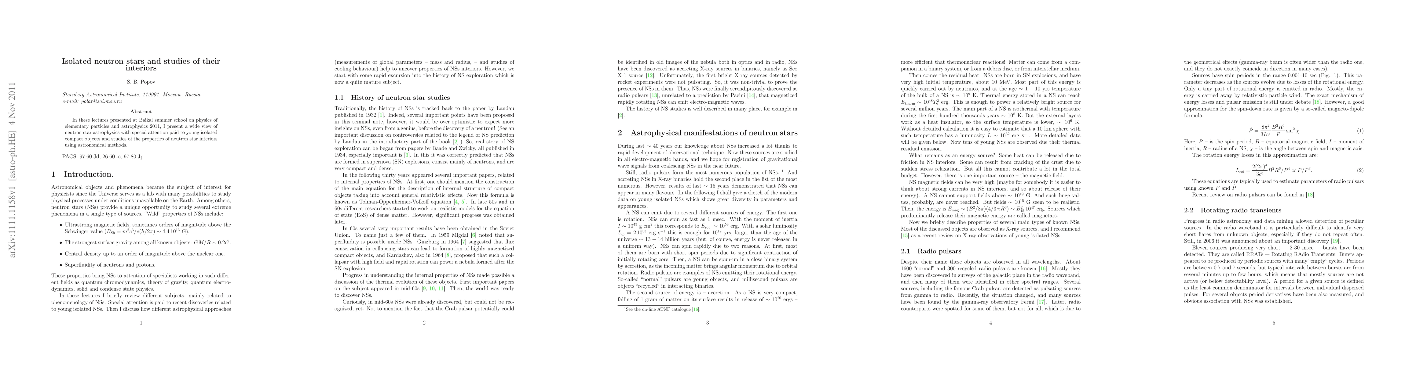 Summary: This lecture series explores neutron star astrophysics, focusing on young isolated neutron stars and employing astronomical techniques to investigate their internal properties. The discussions are based on presentations from the Baikal summer school on elementary particles and astrophysics.