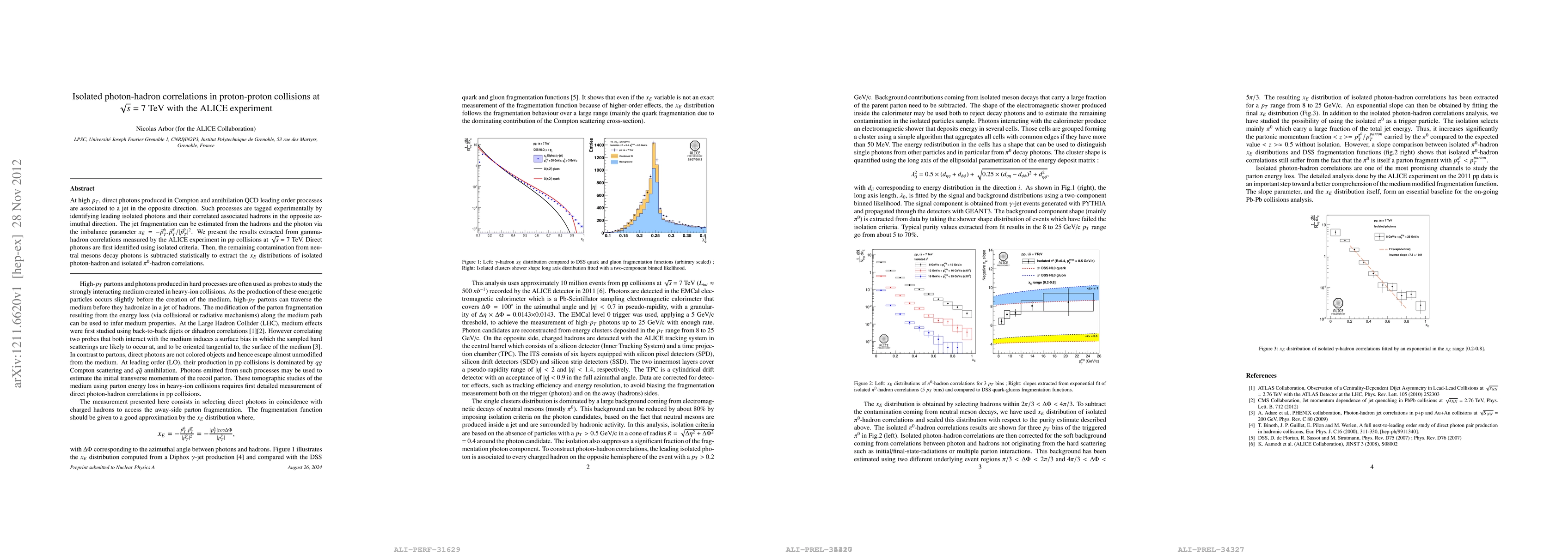 This paper reports on the ALICE experiment's findings of isolated photon-hadron correlations in proton-proton collisions at 7 TeV, focusing on the identification of direct photons and their associated hadrons to estimate jet fragmentation via the xE parameter. The study subtracts neutral meson decay photon contamination to analyze the xE distributions of isolated photon-hadron and π0-hadron correlations.