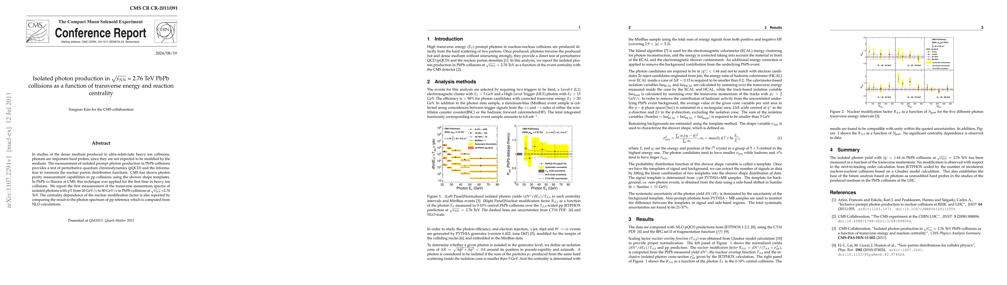 Researchers measured isolated photon production in PbPb collisions at 2.76 TeV, finding a modification of the photon spectrum with increasing centrality, which constrains nuclear parton distribution functions.