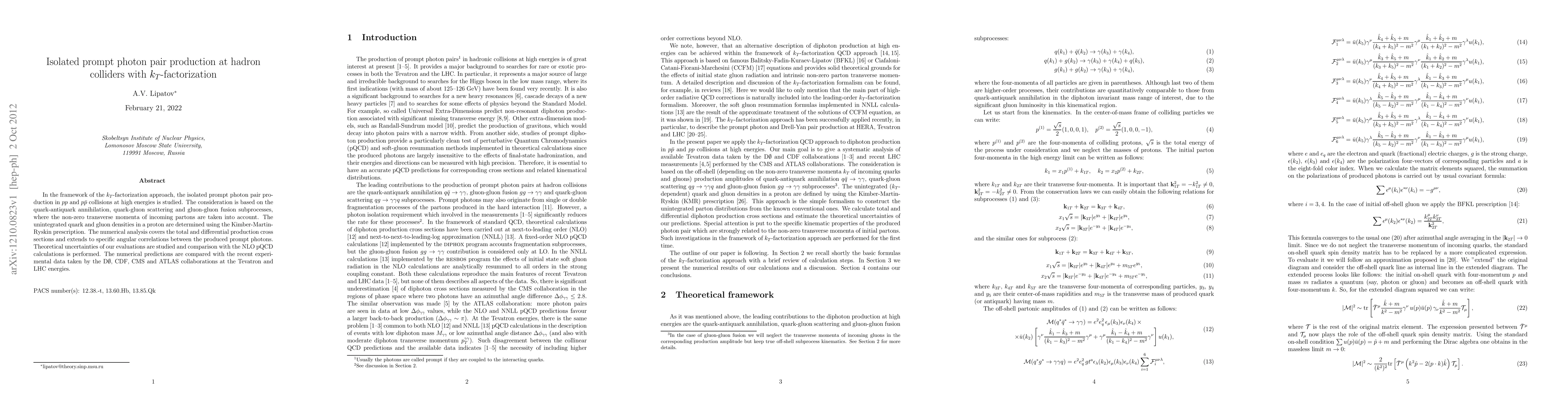 This paper investigates isolated prompt photon pair production in high-energy proton-proton and proton-antiproton collisions using the kt-factorization approach, considering quark-antiquark annihilation, quark-gluon scattering, and gluon-gluon fusion. It compares theoretical predictions with experimental data from D0, CDF, CMS, and ATLAS collaborations and assesses theoretical uncertainties.
