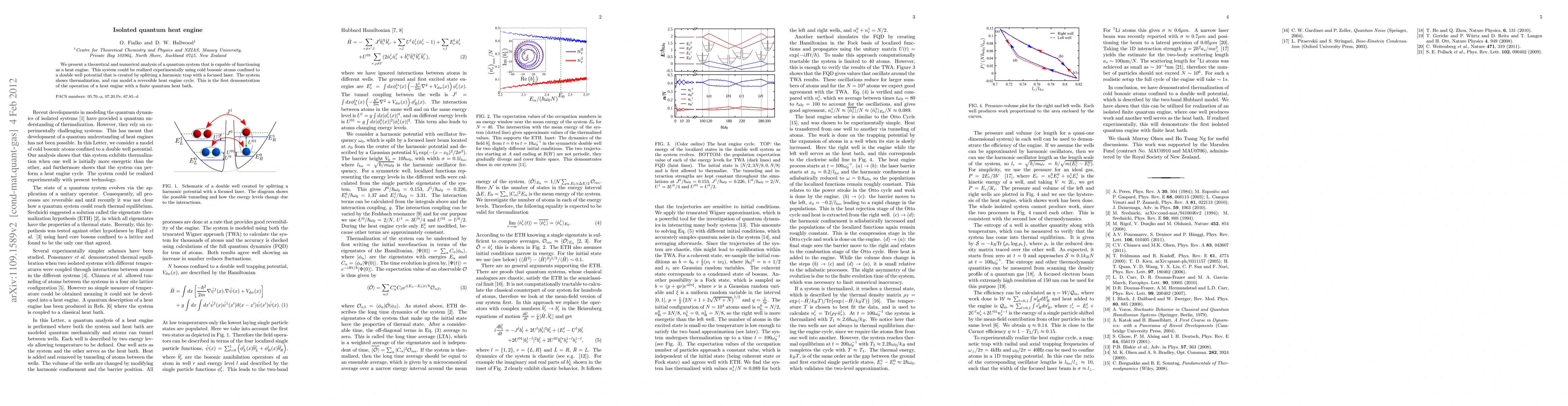 This paper presents a theoretical analysis of a quantum system using cold bosonic atoms in a double well potential, demonstrating its potential as a reversible quantum heat engine with a finite quantum heat bath. The study marks the first experimental realization of such a quantum heat engine cycle.