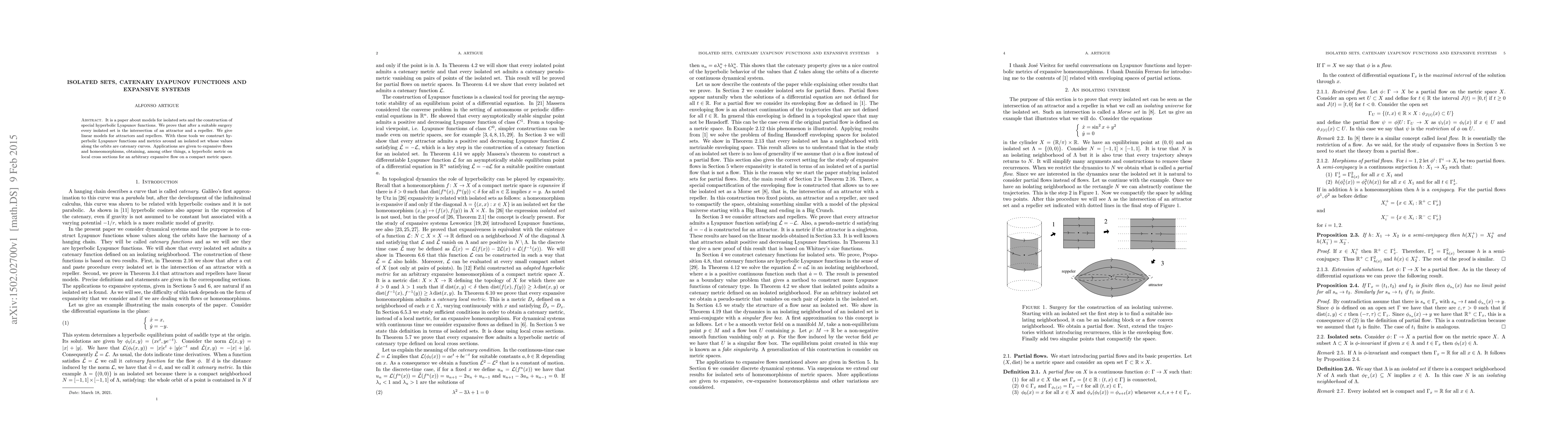 It is a paper about models for isolated sets and the construction of special hyperbolic Lyapunov functions. We prove that after a suitable surgery every isolated set is the intersection of an attractor and a repeller. We give linear models for attractors and repellers. With these tools we construct hyperbolic Lyapunov functions and metrics around an isolated set whose values along the orbits are catenary curves. Applications are given to expansive flows and homeomorphisms, obtaining, among other things, a hyperbolic metric on local cross sections for an arbitrary expansive flow on a compact metric space.