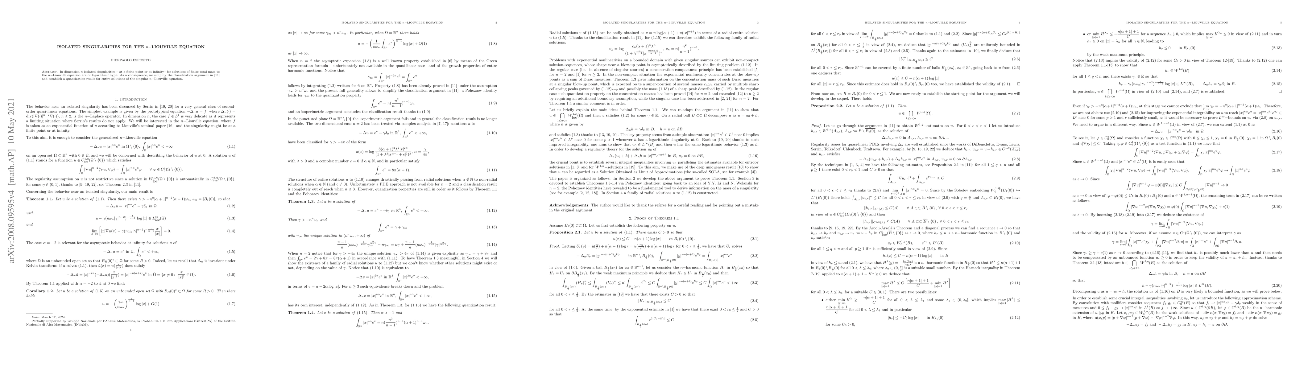 This paper classifies isolated singularities for solutions of finite total mass to the n-Liouville equation, showing they are of logarithmic type. It simplifies previous classification arguments and establishes a quantization result for entire solutions of the singular n-Liouville equation.