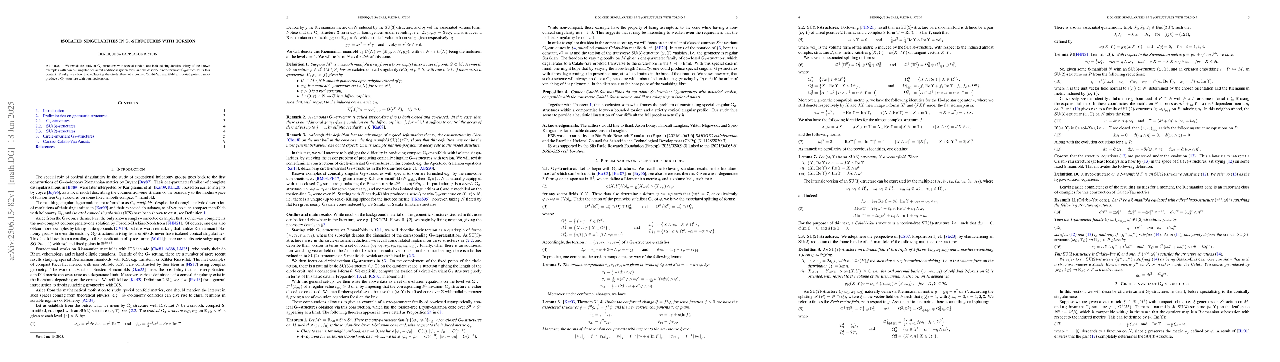 This research is important because it sheds light on the properties of $G_2$-structures with special torsion and isolated singularities, which has potential applications in string theory and geometry.