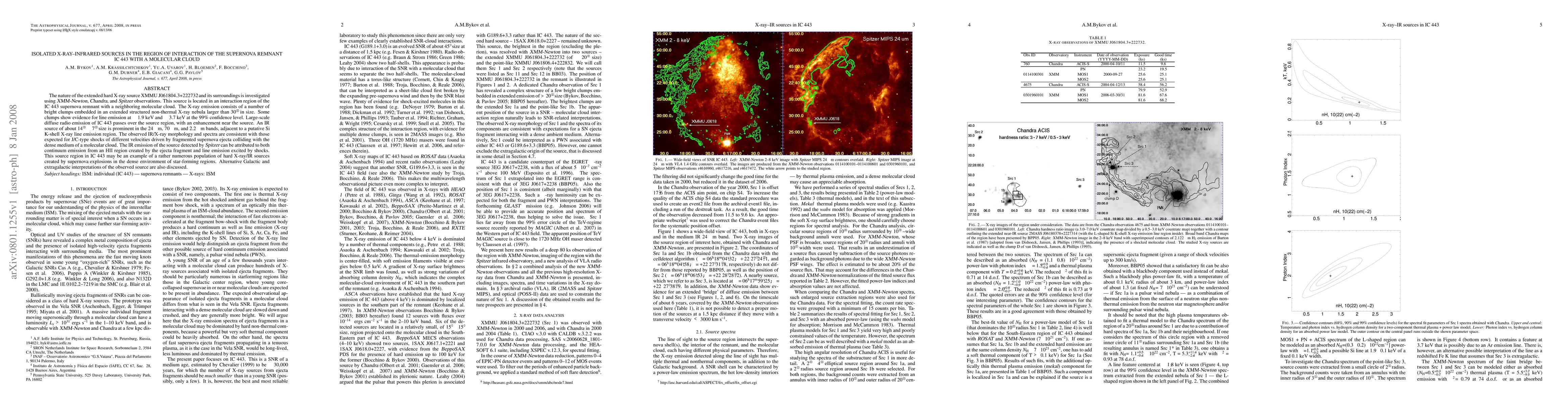 This study investigates the X-ray and infrared sources in the IC 443 supernova remnant interacting with a molecular cloud, revealing a complex structure of non-thermal X-ray emission and IR signatures consistent with J/C-type shocks from supernova ejecta. The findings suggest these sources may be common in star-forming regions.