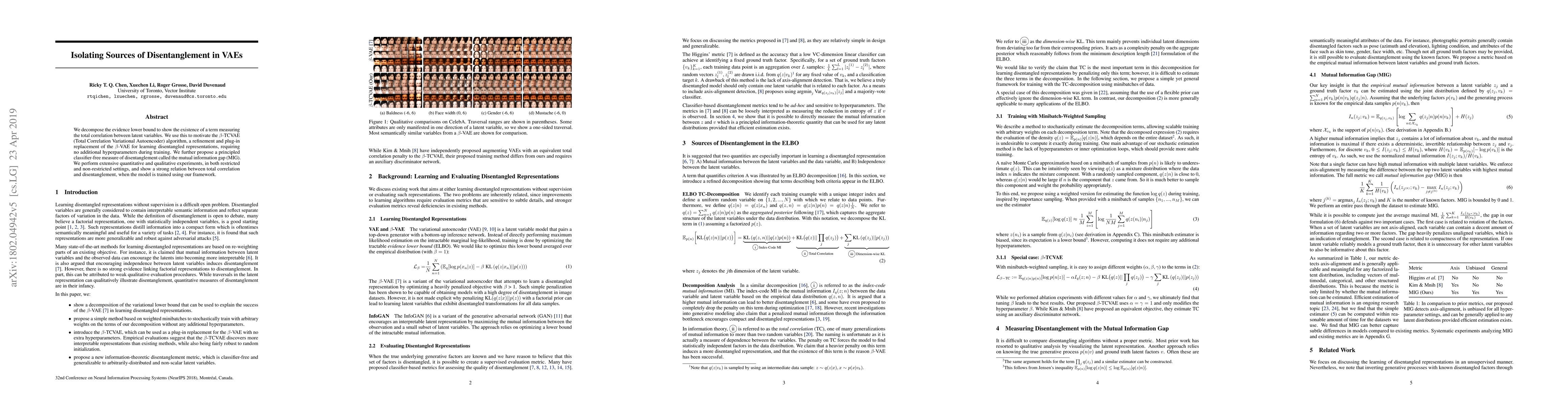 Researchers introduced a new method to measure disentanglement in Variational Autoencoders (VAEs) using total correlation, which shows a strong relation with disentanglement. Their framework requires no additional hyperparameters during training.