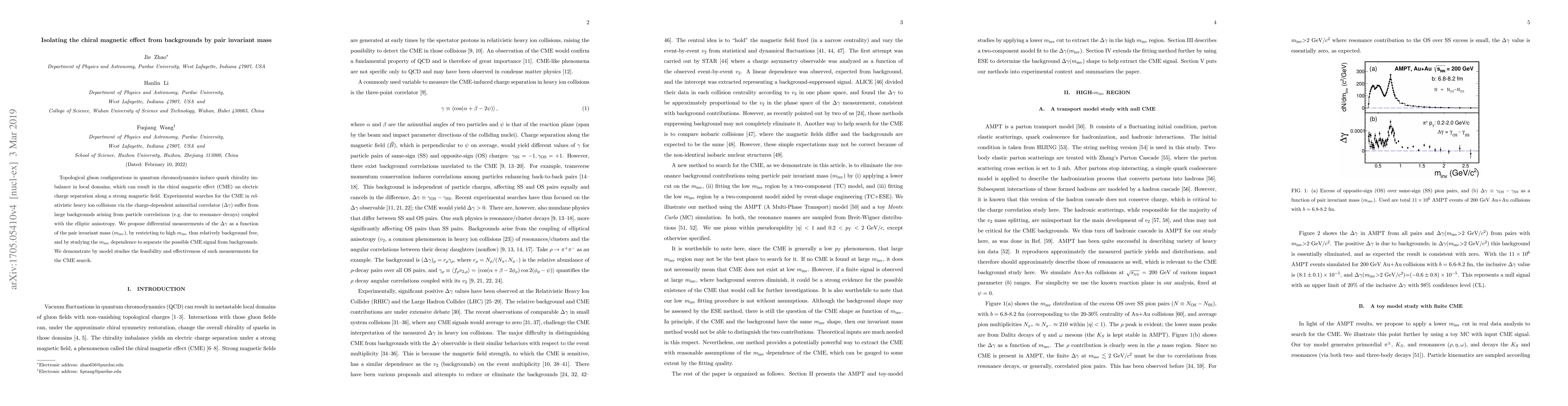 This paper proposes isolating the chiral magnetic effect (CME) in heavy ion collisions by measuring the charge-dependent azimuthal correlator ($\Delta\gamma$) as a function of pair invariant mass ($m_{\rm inv}$), focusing on high $m_{\rm inv}$ to minimize background noise and demonstrating its effectiveness through model studies.