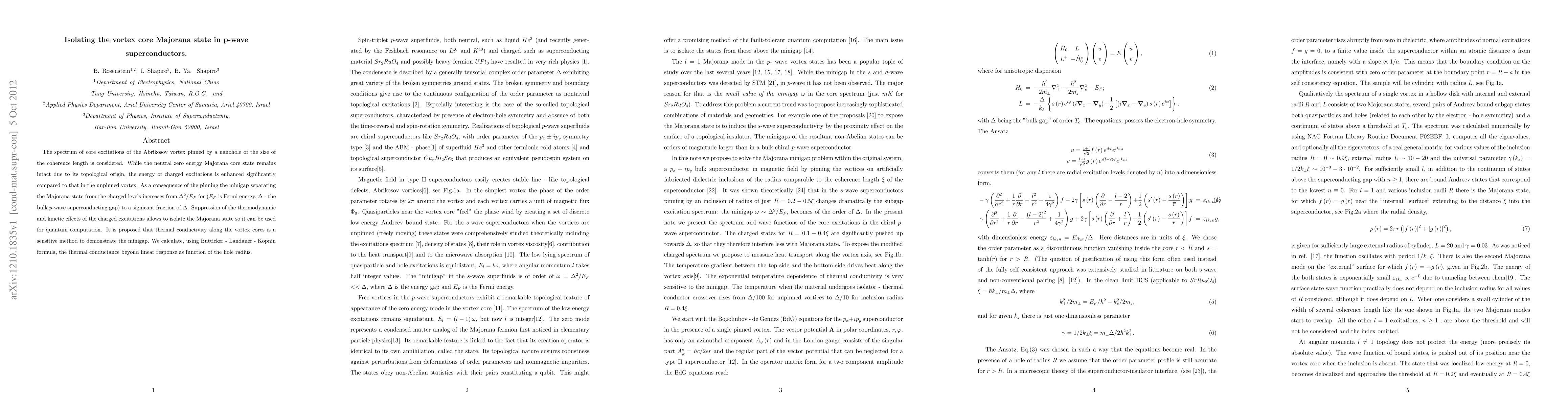 This research identifies a method to isolate the Majorana state in p-wave superconductors by pinning vortices with nanohole defects, increasing the minigap and reducing charged excitation effects. The study proposes thermal conductivity measurement as a sensitive method to demonstrate the minigap, using the Butticker-Landauer-Kopnin formula for thermal conductance calculations.