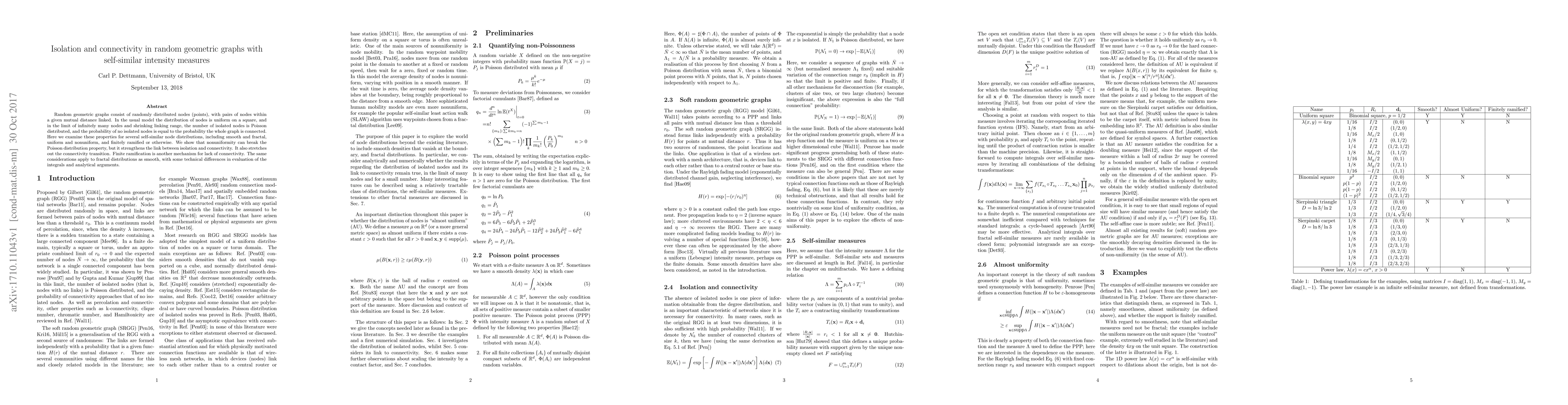 This paper investigates random geometric graphs with self-similar node distributions, showing that nonuniformity disrupts the Poisson distribution of isolated nodes but enhances the connection between isolation and connectivity, while finite ramification hinders connectivity. Fractal distributions follow similar principles as smooth ones, with distinct analytical nuances.