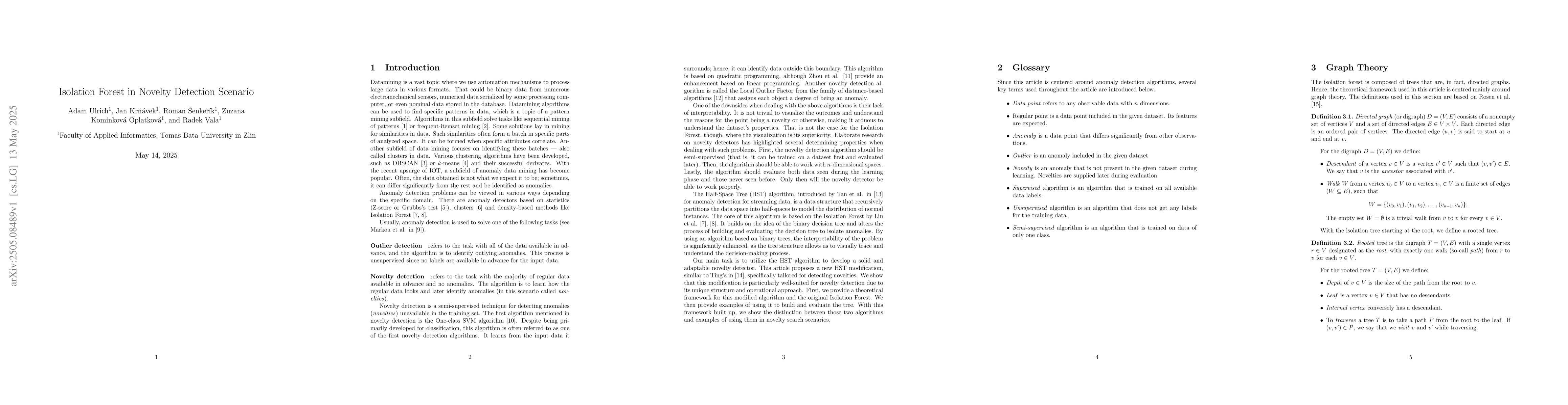 Researchers modify the Half-Space Tree algorithm to detect novelty in data, finding that it can effectively isolate previously unseen patterns, making it a promising interpretable approach for anomaly detection.