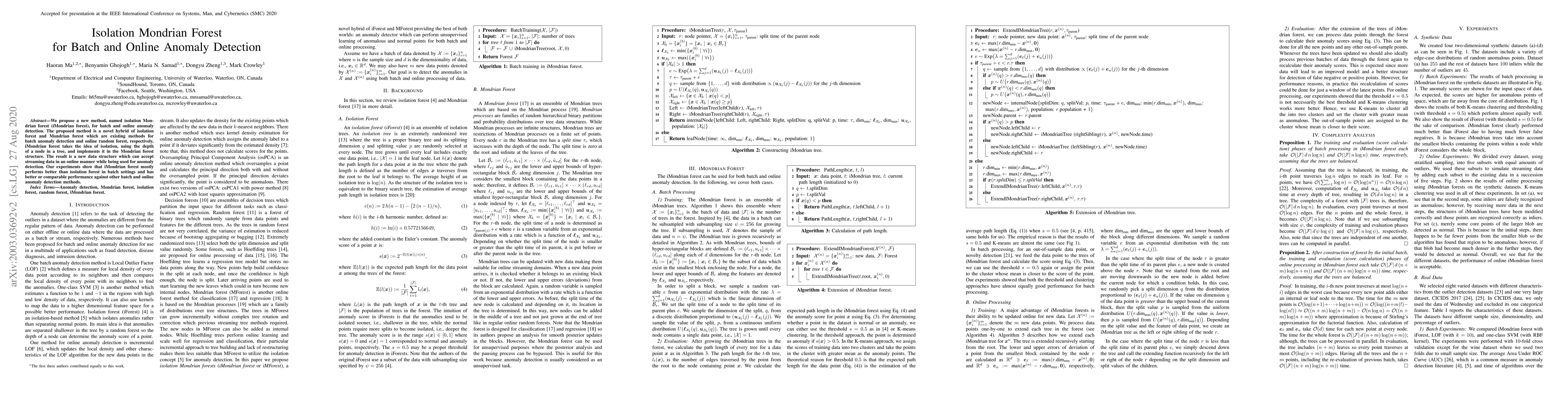 The paper introduces the isolation Mondrian forest (iMondrian forest) method, a hybrid combining isolation forest and Mondrian forest for both batch and online anomaly detection. Experiments demonstrate its superior performance over isolation forest in batch settings and competitive results against other anomaly detection methods.