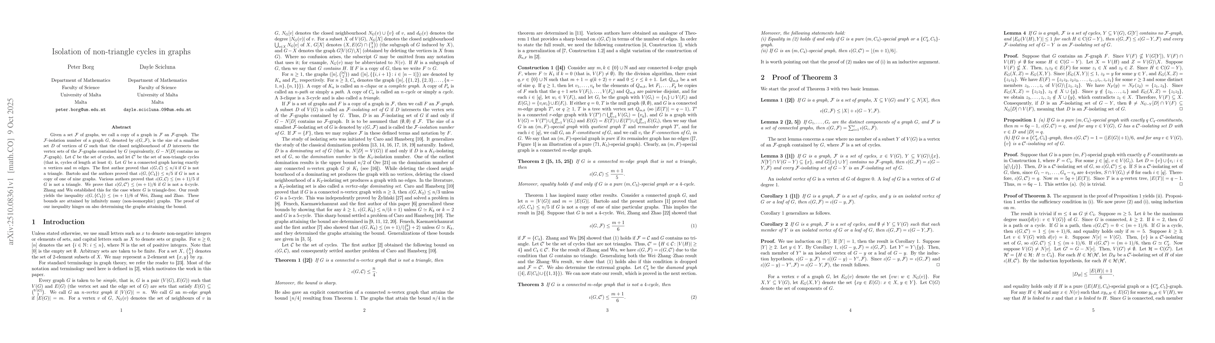 The research employs a combination of graph theory analysis and combinatorial proofs to investigate the isolation properties of graphs, particularly focusing on cycle and clique isolation numbers. It builds upon existing results in domination theory and extends them to new contexts.