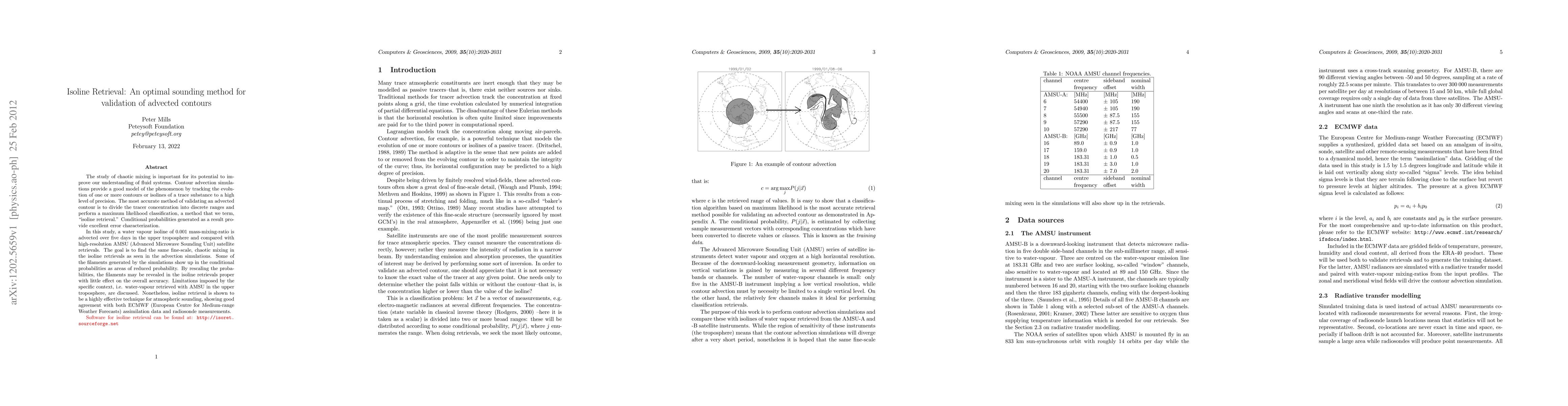 Researchers developed an effective technique called 'isoline retrieval' to validate advected contours in fluid systems, achieving good agreement with satellite retrievals and ground-based measurements.