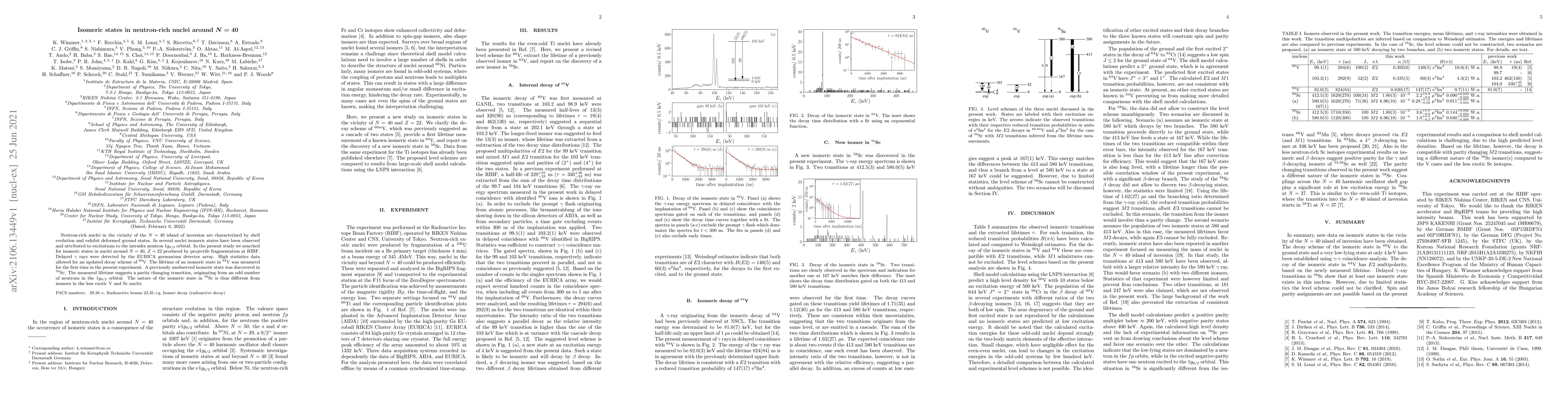 The study utilized projectile fragmentation at RIBF to produce neutron-rich nuclei around N=40, Z=22. Delayed γ rays were detected by the EURICA germanium detector array to search for isomeric states.