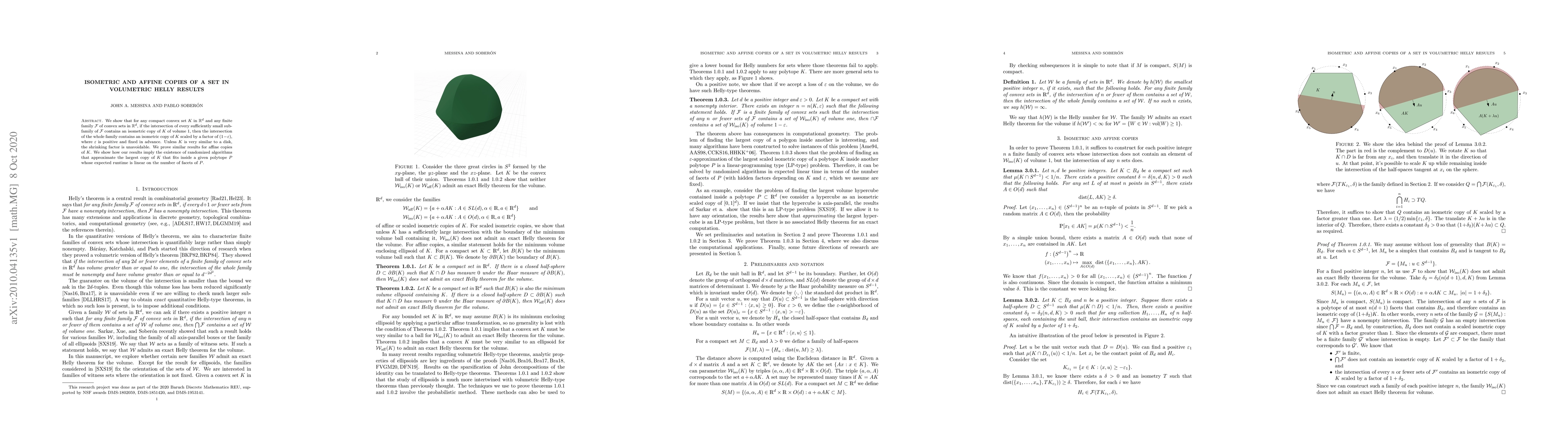 This research demonstrates that if small subfamilies of a finite set of convex sets in d-dimensional space all contain an isometric copy of a compact convex set K of volume 1, then the entire family contains a scaled-down isometric copy of K. This applies to affine copies as well. The findings also lead to efficient algorithms for finding the largest scaled copy of K fitting inside another given polytope P, with a linear expected runtime based on P's facets.