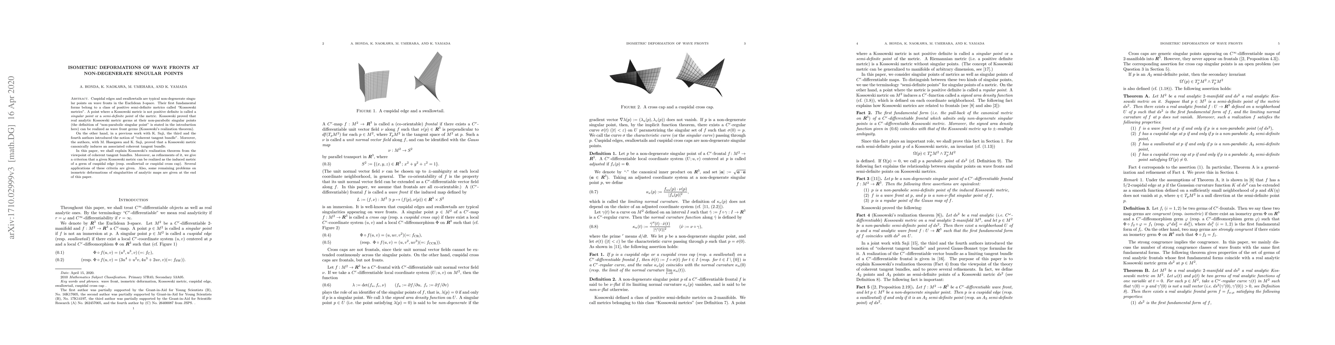 This paper explores Kossowski's realization theorem concerning the representation of non-degenerate singular points on wave fronts using coherent tangent bundles. It provides criteria for realizing specific Kossowski metrics as induced metrics of cuspidal edges, swallowtails, or cuspidal cross caps, and discusses applications and open problems related to isometric deformations of singularities.