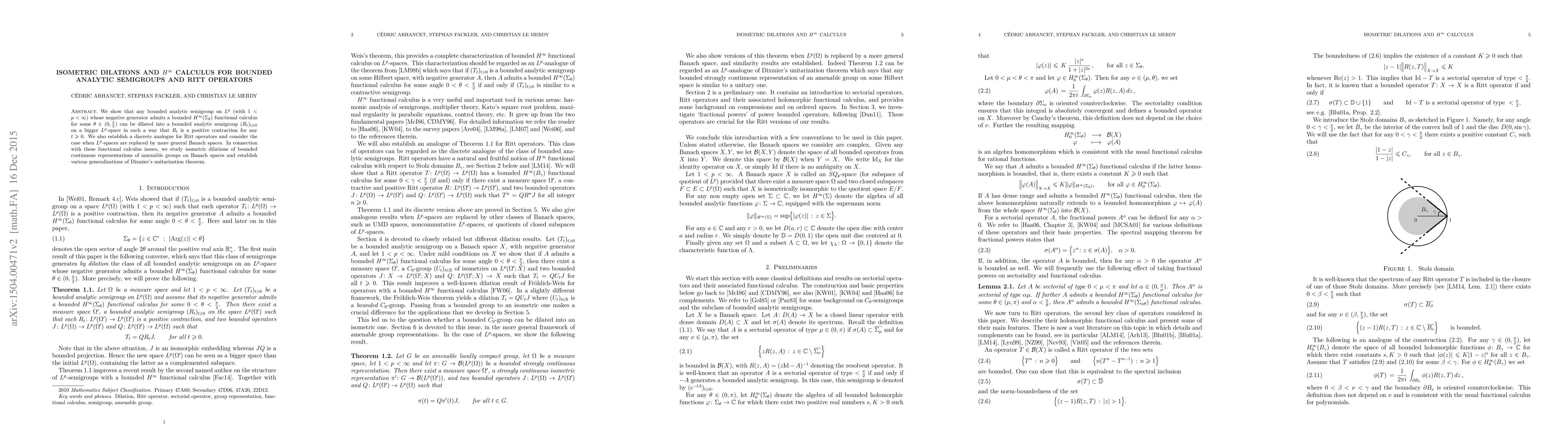 This paper demonstrates that bounded analytic semigroups on $L^p$ spaces with specific $H^\infty$ functional calculus properties can be isometrically dilated into larger $L^p$ spaces, maintaining positive contraction. It also extends these results to Ritt operators and considers generalizations to Banach spaces, alongside related functional calculus and unitarization theorems for amenable groups.