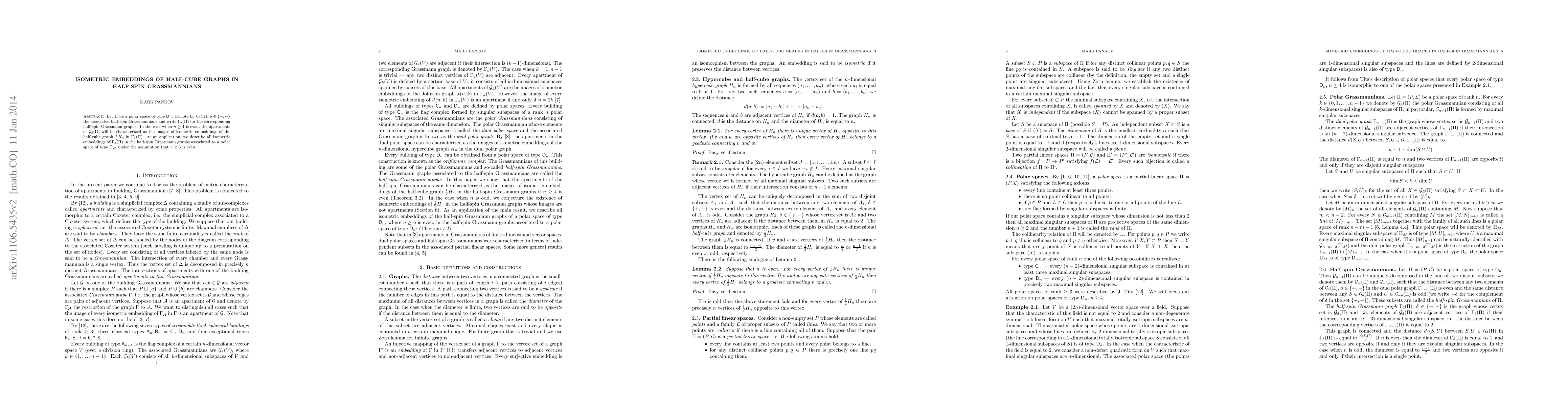 This paper investigates isometric embeddings of half-cube graphs into half-spin Grassmannians associated with polar spaces of type $\textsf{D}_{n}$. It characterizes the apartments of these Grassmannians as images of such embeddings when $n$ is even and greater than or equal to 4.