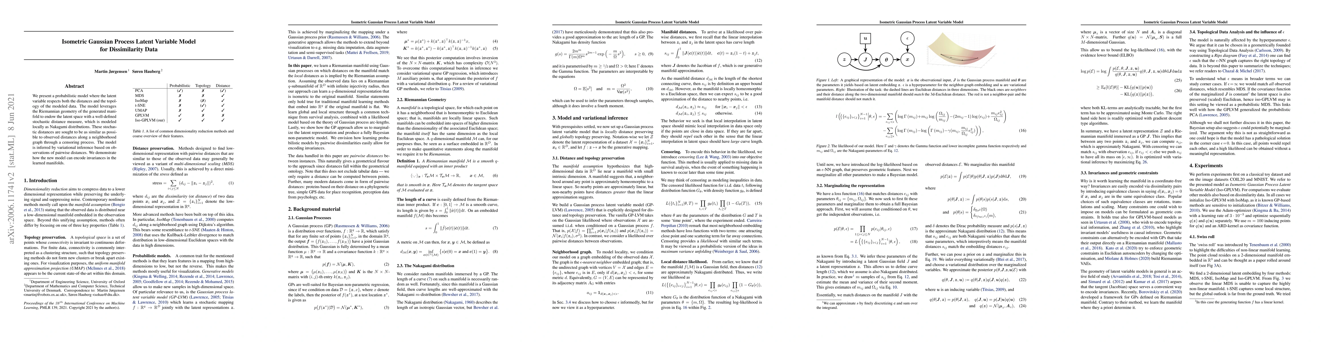 The paper introduces an Isometric Gaussian Process Latent Variable Model that incorporates both distances and topology of dissimilarity data, allowing for the encoding of invariances in learned manifolds through a variational inference process.