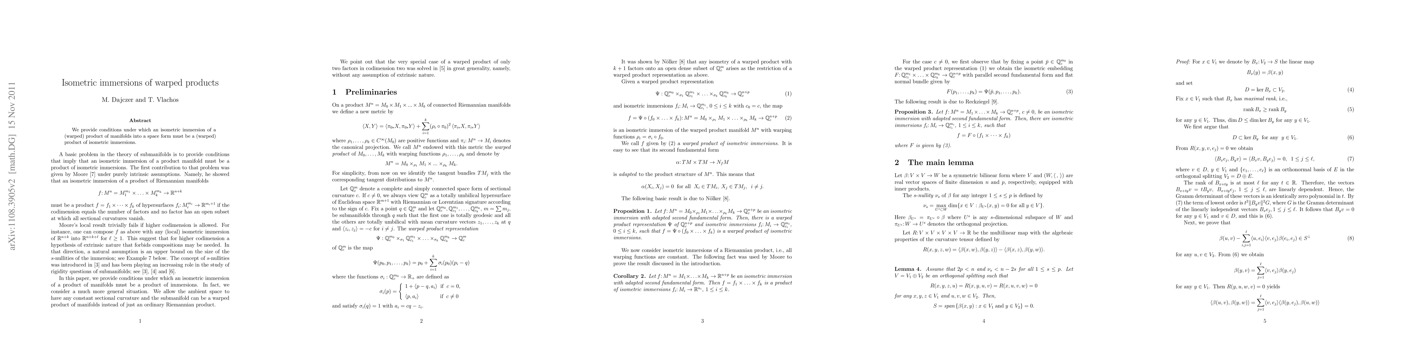 Summary: This paper establishes conditions for an isometric immersion of a warped product manifold to be itself a warped product of isometric immersions, thereby preserving the structure of the original manifold. The results provide insight into the geometric nature of such immersions.