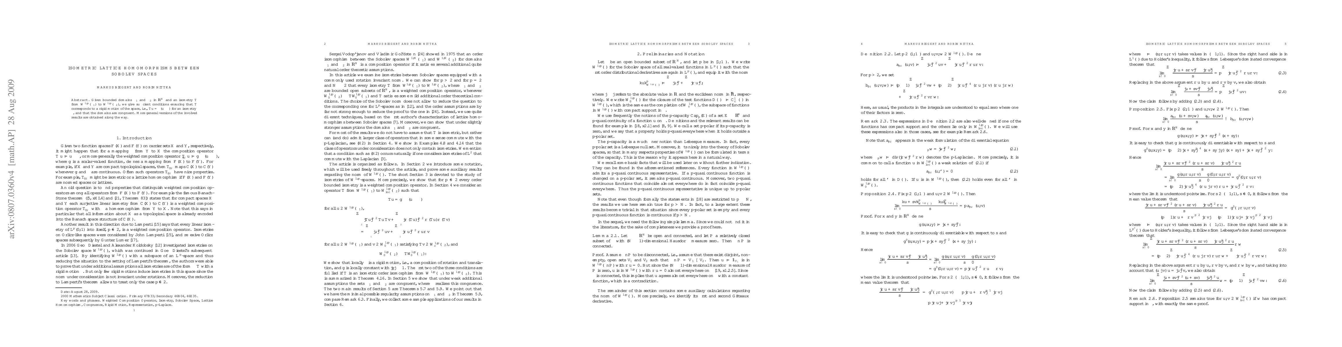 The paper investigates when an isometric mapping between Sobolev spaces implies congruent domains, finding conditions that guarantee a rigid motion of the space.