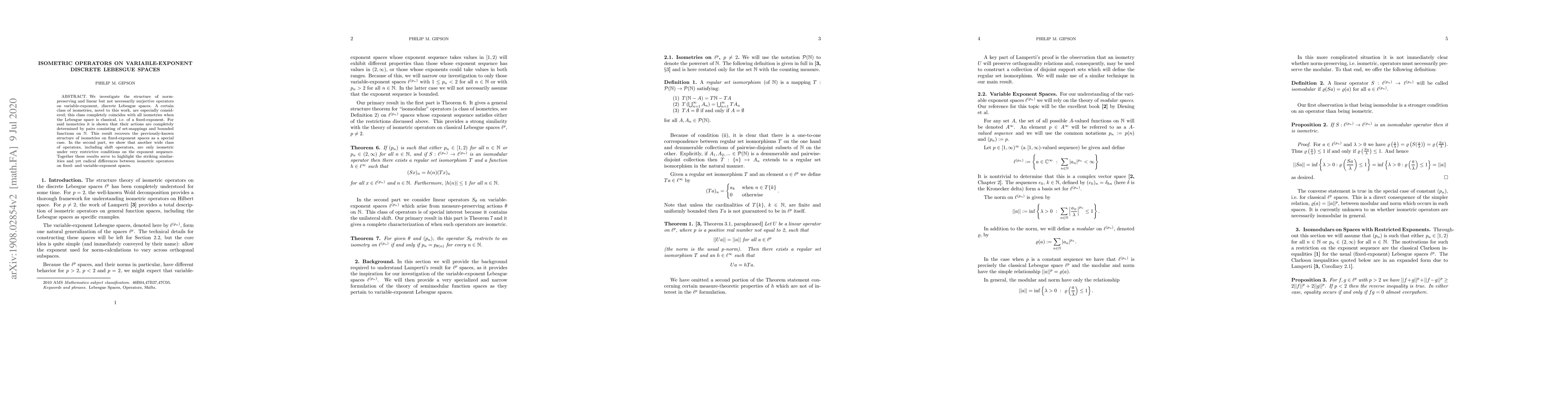 We investigate the structure of norm-preserving and linear but not necessarily surjective operators on variable-exponent, discrete Lebesgue spaces. A certain class of isometries, novel to this work, are especially considered; this class completely coincides with all isometries when the Lebesgue space is classical, i.e. of a fixed-exponent. For said isometries it is shown that their actions are completely determined by pairs consisting of set-mappings and bounded functions on $\mathbb{N}$. This result recovers the previously-known structure of isometries on fixed-exponent spaces as a special case. In the second part, we show that another wide class of operators, including shift operators, are only isometric under very restrictive conditions on the exponent sequence. Together these results serve to highlight the striking similarities and yet radical differences between isometric operators on fixed- and variable-exponent spaces.
