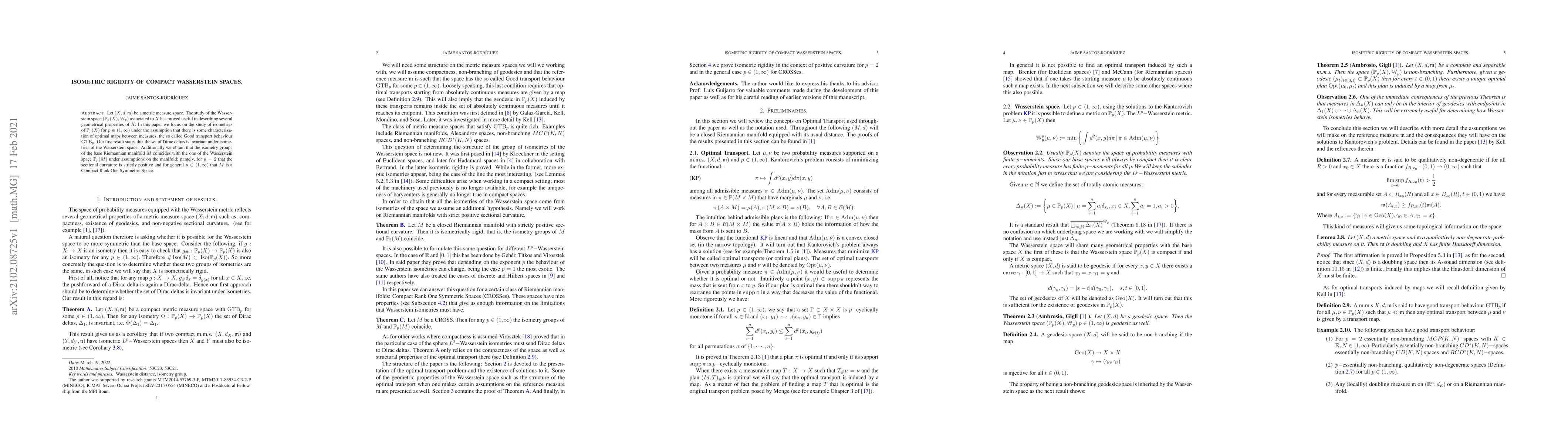This paper studies isometries of compact Wasserstein spaces, showing that Dirac deltas are invariant under these transformations and the isometry groups of the base manifold coincide with those of the Wasserstein space under certain conditions.