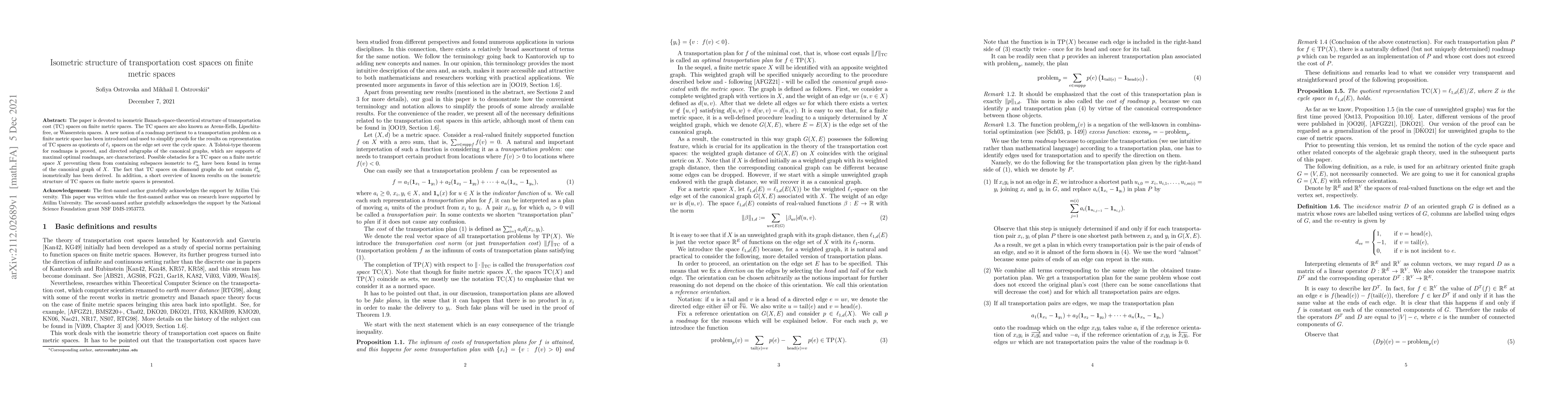This paper explores the isometric Banach-space structure of transportation cost (TC) spaces on finite metric spaces, introducing a new roadmap concept to simplify representations of TC spaces as quotients of $\ell_1$ spaces. It proves a Tolstoi-type theorem and characterizes directed subgraphs supporting maximal optimal roadmaps, while identifying obstacles preventing certain TC spaces from containing $\ell_\infty^n$ subspaces.