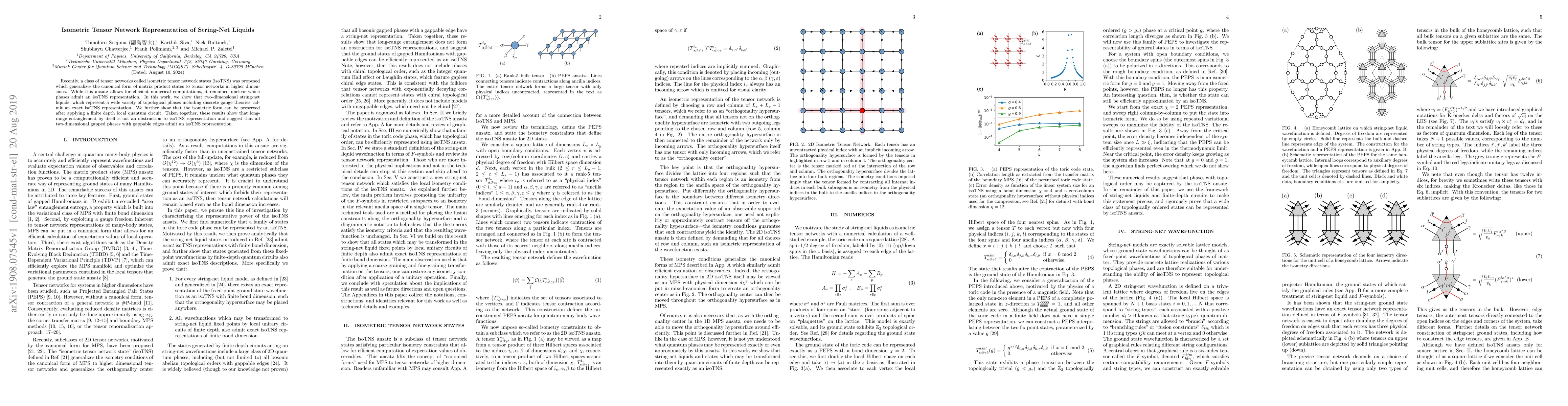 This paper demonstrates that two-dimensional string-net liquids, encompassing various topological phases, can be exactly represented using isometric tensor network states (isoTNS). The findings suggest that long-range entanglement does not hinder isoTNS representation, implying that all two-dimensional gapped phases with gappable edges may also admit such representations.