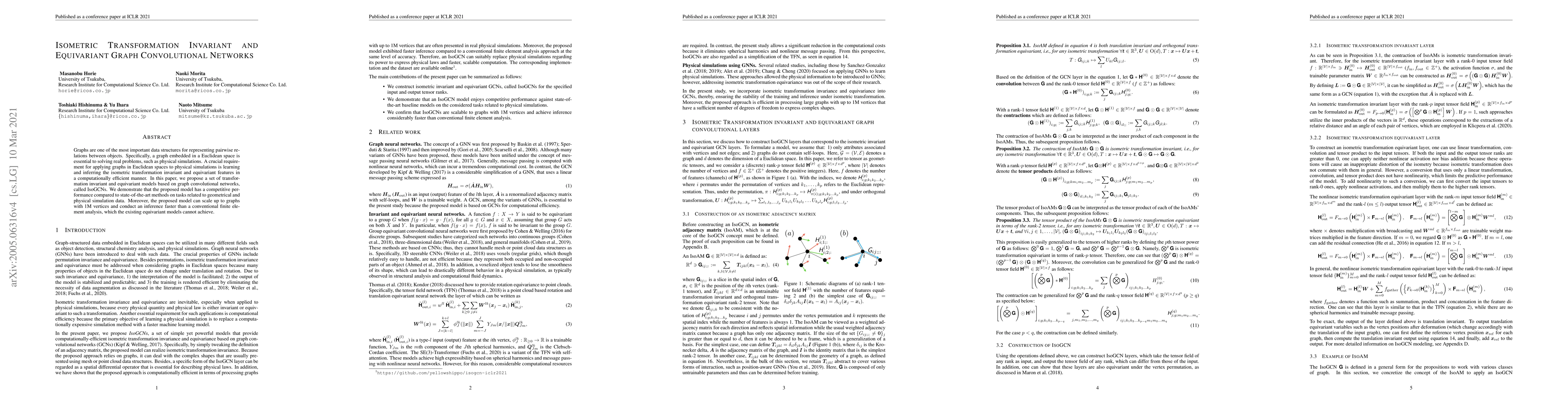 This paper proposes IsoGCNs, a set of graph convolutional networks designed to learn isometric transformation invariant and equivariant features efficiently. The model demonstrates competitive performance on geometrical and physical simulation tasks and scales to large graphs, outperforming conventional finite element analysis in speed.