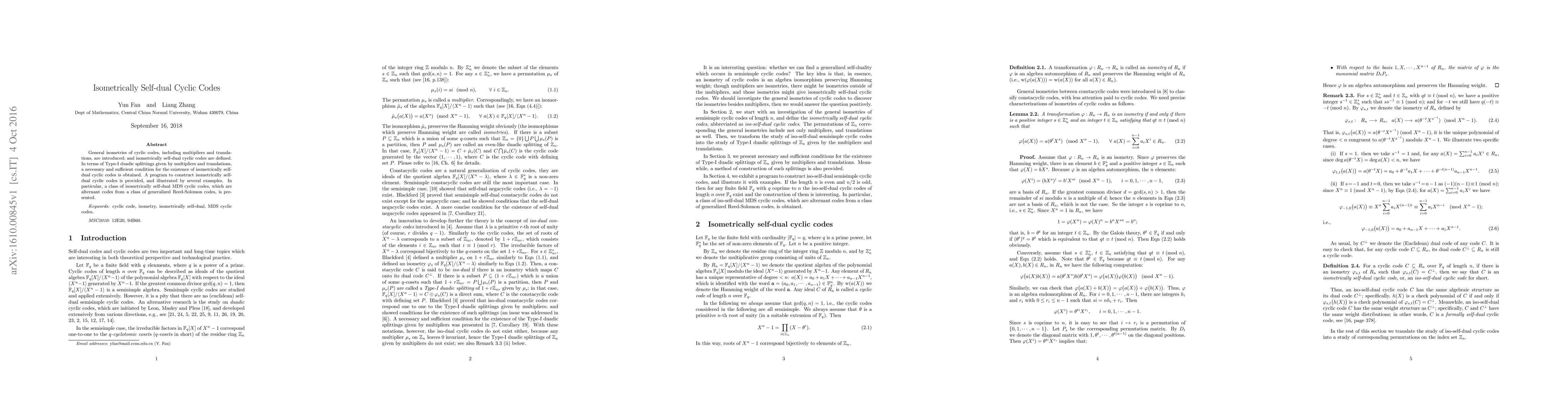 General isometries of cyclic codes, including multipliers and translations, are introduced; and isometrically self-dual cyclic codes are defined. In terms of Type-I duadic splittings given by multipliers and translations, a necessary and sufficient condition for the existence of isometrically self-dual cyclic codes is obtained. A program to construct isometrically self-dual cyclic codes is provided, and illustrated by several examples. In particular, a class of isometrically self-dual MDS cyclic codes, which are alternant codes from a class of generalized Reed-Solomon codes, is presented.