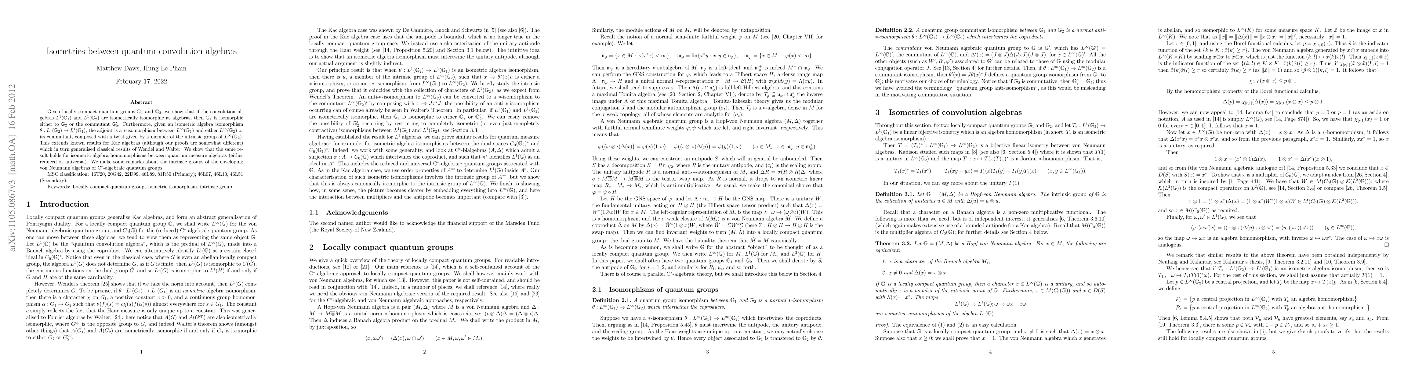 This paper proves that isometric isomorphisms between convolution algebras of locally compact quantum groups imply that the groups are isomorphic to each other or to each other's commutant, extending classical results to quantum settings. It also discusses similar results for quantum measure algebras and comments on the intrinsic groups of their enveloping von Neumann algebras.