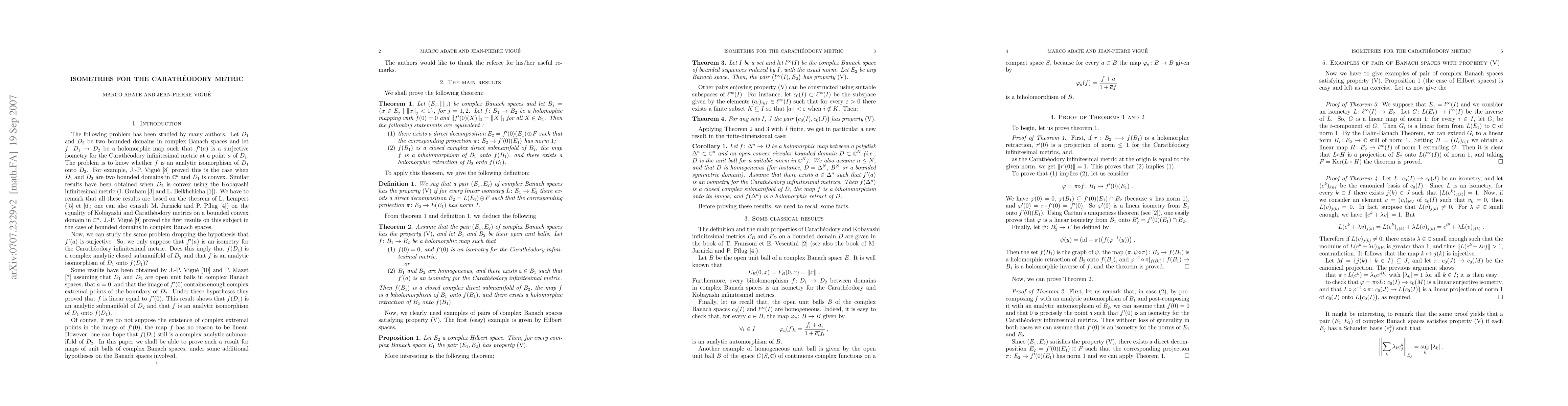 Summary: This paper proves that under specific conditions, a map that preserves distances in the Caratheodory metric at a point is an analytic isomorphism onto its image. The result highlights the relationship between isometries and analytic properties in the context of the Caratheodory metric.