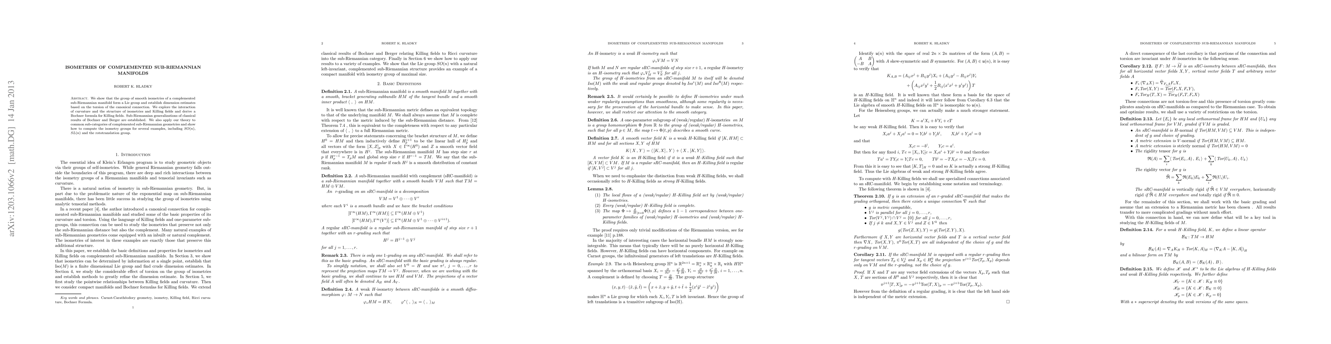 The paper introduces methods for analyzing the Lie group structure of isometry groups in complemented sub-Riemannian manifolds, along with dimension estimates and a Bochner formula for Killing fields.