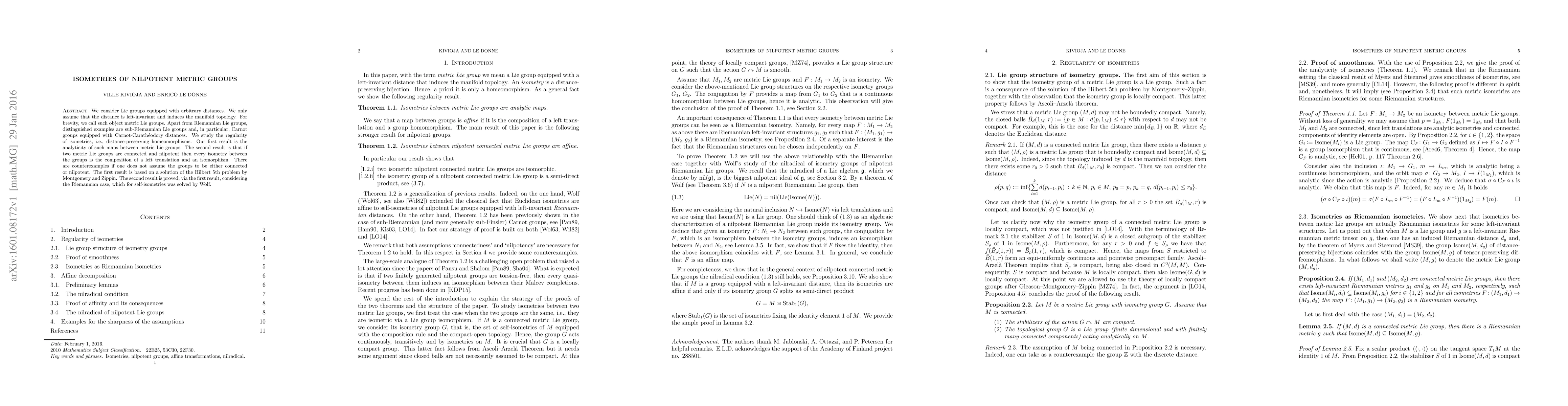 The paper provides a detailed analysis of the regularity of isometries in metric Lie groups, proving their analyticity and characterizing them for connected, nilpotent groups.