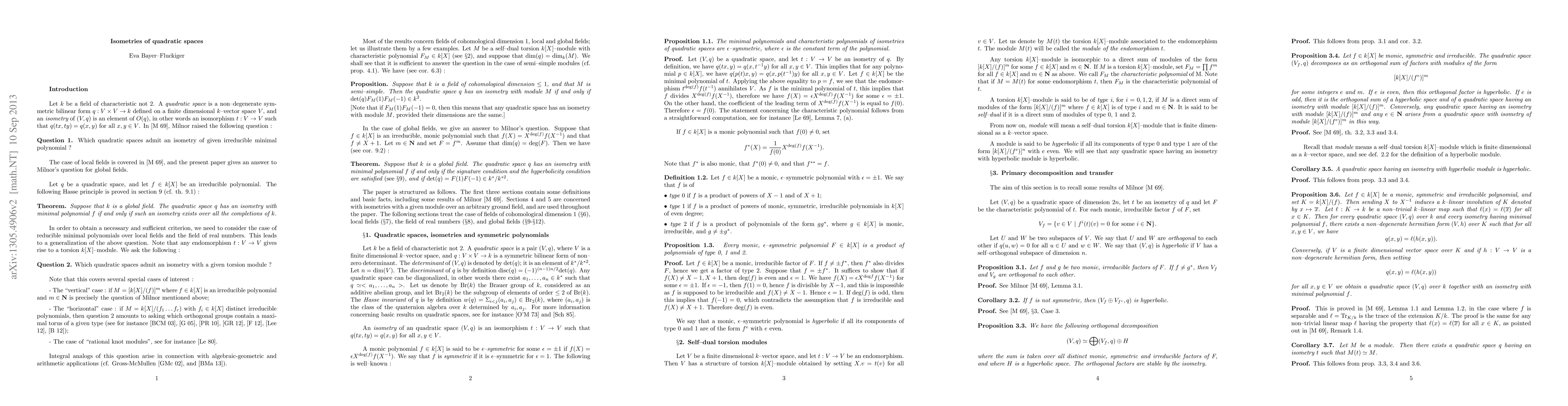 Researchers provide an answer to a 1969 question by Milnor on whether quadratic spaces have isometries with minimal polynomial f, focusing on global fields, and offering implications for understanding quadratic forms in algebraic geometry.