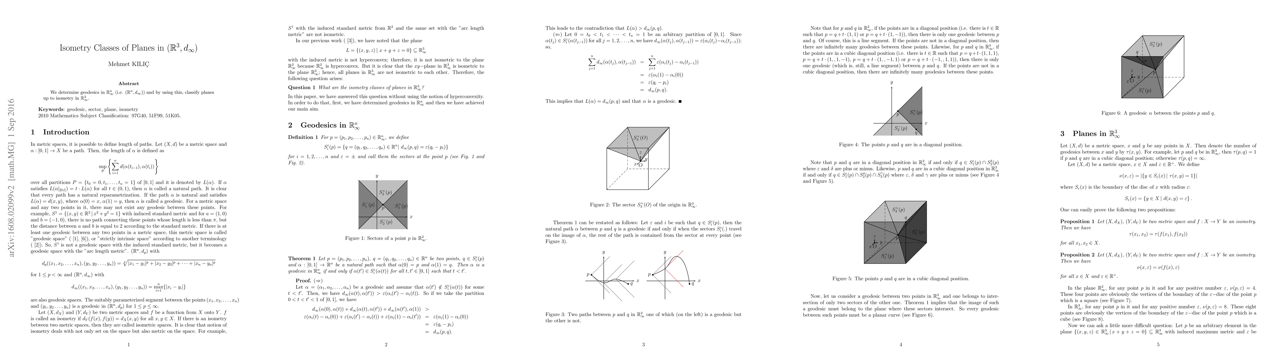 Summary: This paper identifies geodesics in $\mathbb{R}_{\infty}^3$ and utilizes this information to classify planes within this space up to isometry, providing a detailed understanding of their geometric properties.