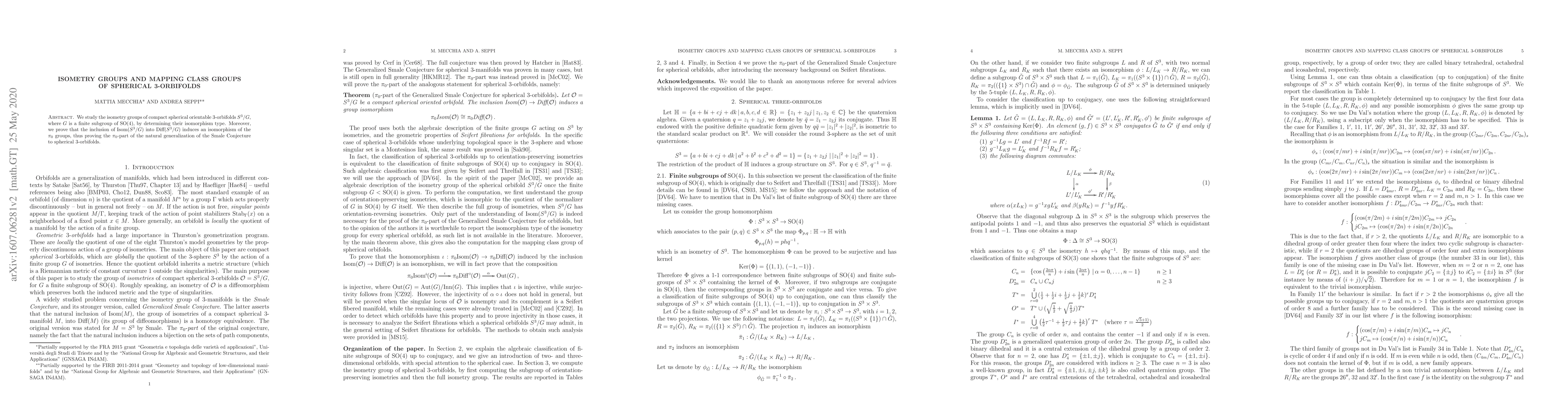 This paper investigates the isometry groups of compact spherical orientable 3-orbifolds $S^3/G$ and determines their isomorphism types. It also proves that the inclusion of the isometry group into the diffeomorphism group induces an isomorphism of $\pi_0$ groups, confirming the $\pi_0$-part of the generalized Smale Conjecture for these 3-orbifolds.