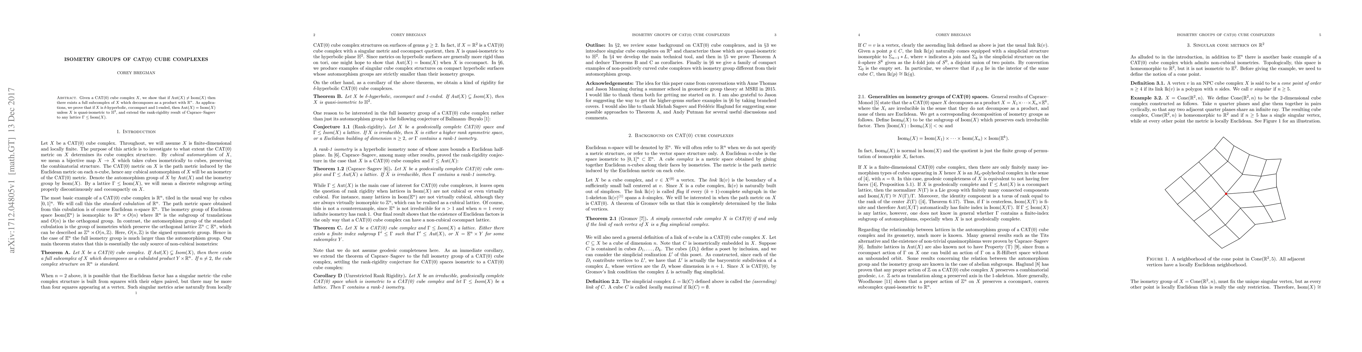 Given a CAT(0) cube complex X, we show that if Aut(X) $\neq$ Isom(X) then there exists a full subcomplex of X which decomposes as a product with $\mathbb{R}^n$. As applications, we prove that if X is $\delta$-hyperbolic, cocompact and 1-ended, then Aut(X) $=$ Isom(X) unless X is quasi-isometric to $\mathbb{H}^2$, and extend the rank-rigidity result of Caprace-Sageev to any lattice $ \Gamma\leq$ Isom(X).