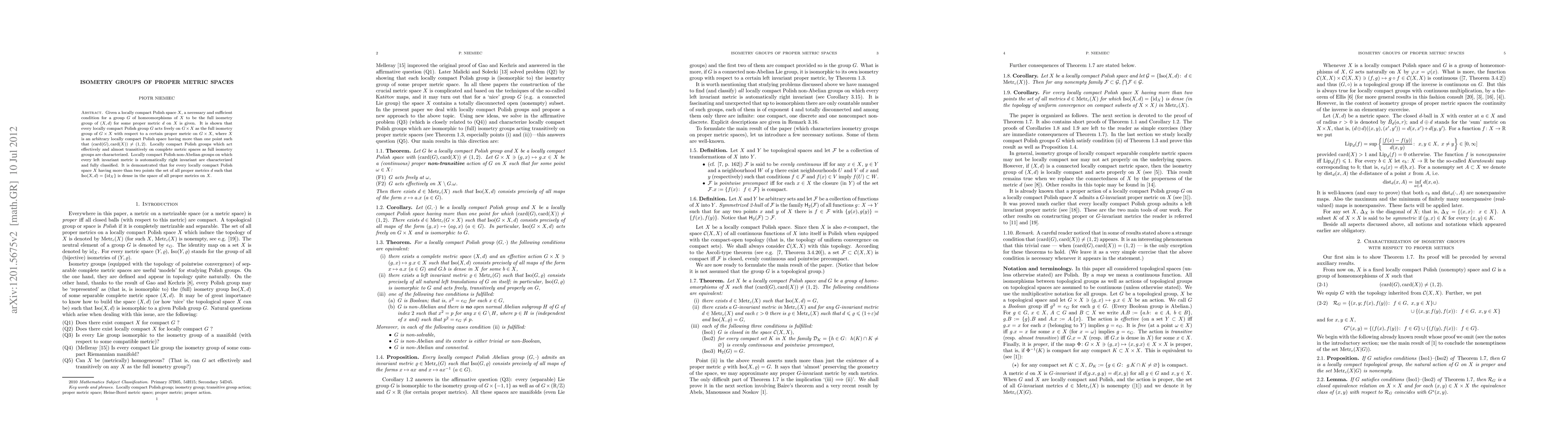 This paper provides a comprehensive analysis of isometry groups for proper metric spaces on locally compact Polish spaces, establishing necessary and sufficient conditions for a group of homeomorphisms to be the full isometry group of a proper metric. It characterizes locally compact Polish groups acting as full isometry groups and explores properties of metrics on such spaces.